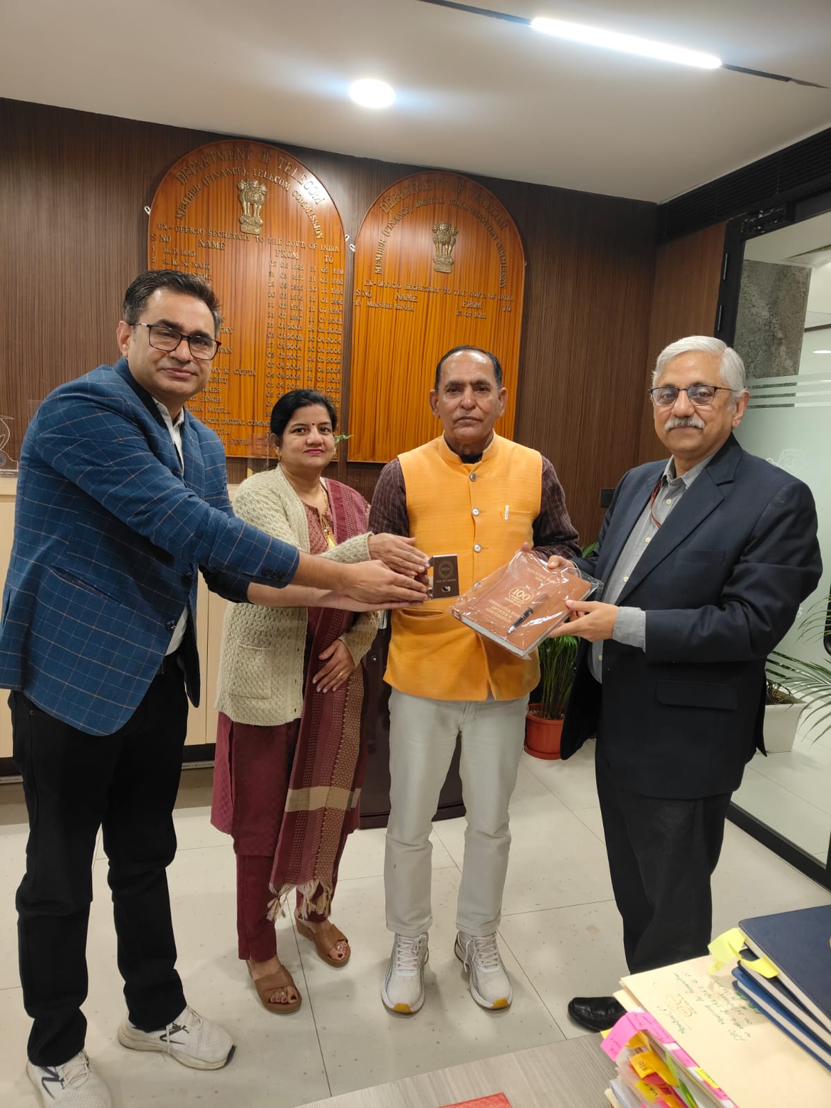On the occasion of New Year 2026, a courtesy meeting was held with Hon’ble Member (Services) DOT, Shri D. Chakraborty and Hon’ble Member (Finance) DOT, Shri Manish Sinha at Sanchar Bhawan, Ashoka Road, New Delhi.